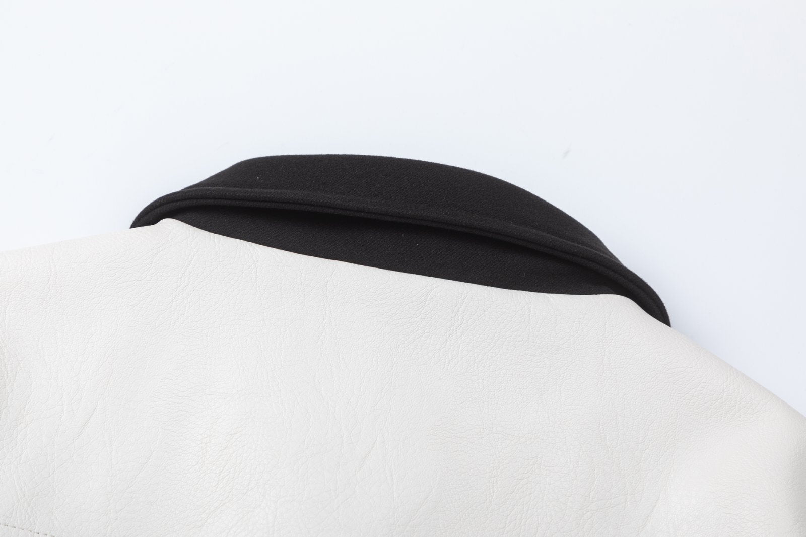 Grained leather jacket. · Striped rib-knit stand collar, hem, and cuffs · Press-stud closure · Logo embroidered at chest and back · Zip pockets at front · Text appliqués at back · Welt pocket at interior · Full twill lining Supplier color: Black